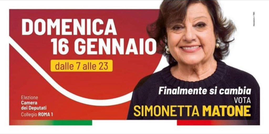 Scrivo queste righe per informarti (pochissimi ne sono a conoscenza) che domenica 16 gennaio si Voterà per la Camera dei Deputati (collegio centro storico), il Centrodestra unito ha candidato il magistrato Simonetta Matone.
